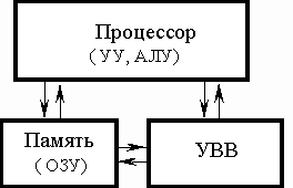1. Любую ЭВМ образуют три основные компоненты: процессор, память и устройства ввода-вывода (УВВ).