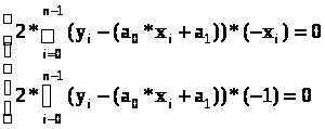 Необходимо найти коэффициенты a>0> и a>1>, чтобы критерий качества стремился к минимуму. Как известно, необходимое условие минимума – равенство 0 первых производных функции по соответствующим переменным. Найдем производные критерия качества (1) по переменным a>0> и a>1>