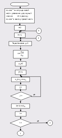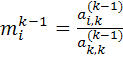 В представленной блок-схеме все множители, на которые нужно умножать уравнения, обозначаем буквой m, т. к. на каждом этапе требуется не более 1-го множителя.