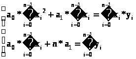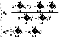 Рассмотрим наиболее простой вид аппроксимации, т.е. замены таблицы значений аналитическим видом функции – аппроксимацию линейной функцией, т.е. будем находить функцию y=a>0>*x+a>1>, из которой в точках x>0>, x>1>,…,x>n>>-1> значения будут близки к y>0>, y>1>,...,y>n>>-1>. В качестве критерия близости будем рассматривать квадратичный критерий качества