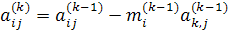 k-номер уравнения, который вычитается из остальных, а также неизвестного, который исключается из остальных n-k уравнений