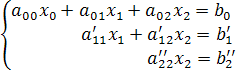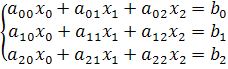 Для того, чтобы решить систему методом Гаусса необходимо вычислить коэффициенты при неизвестных а>0> , а>1 >и а>2> и записать их в соответствующие переменные и, может быть, выполнить переобозначение , так как при решении системы уравнений методом Гаусса систему уравнений мы записывали в виде: