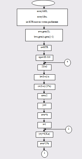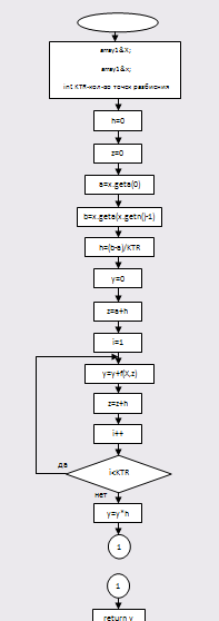 3.12 Блок-схема для вычисления интеграла методом центральных прямоугольников