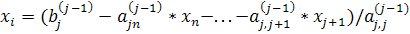 Мы получили треугольную систему уравнений и необходимо выполнить обратную подстановку для вычисления неизвестных.