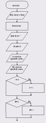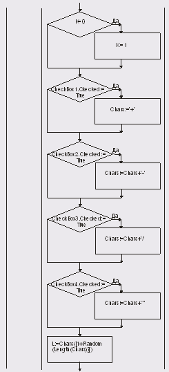 Ниже приведена блок схема работы кнопки Button1 отвечающей за создание примера.