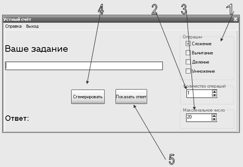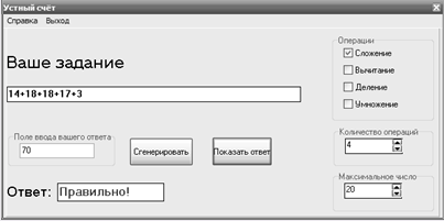 "Устный счет"является игровым приложением для ПК, включающим в себя стандартные операции математики. Стоит рассмотреть методы обработки входных данных, коими являются параметры генерирования примера.