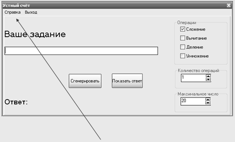 Операции – в данном разделе пользователь вводит какие операции устного счета будут в примере.
