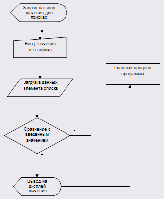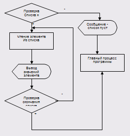 Рис 3. Блок-схема процедуры вывода данных из списка на дисплей