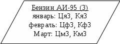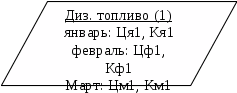 1 – дизельное топливо; 2 – бензин АМ-92; 3 – бензин АИ-95; Ця – цена за 1 л топлива в январе; Кя – кол-во приобретенного топлива в январе; Цср – средняя цена 1 л топлива за месяц; Цср кв - средняя цена 1 л топлива за квартал