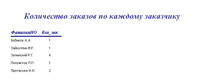 3.Отчет “Количество заказов по каждому заказчику”
