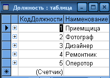 Поле со списком Таблица или запрос Источник: ”Должность” |