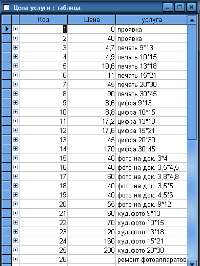 INNER JOIN Заказ ON [Цена услуги]. Код = Заказ. Цена;