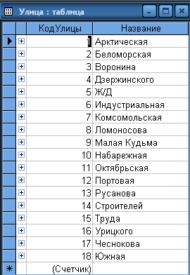 Поле со списком Таблица или запрос Источник: ”Улица” |