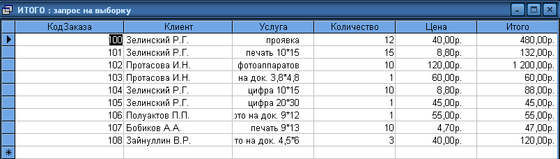 1.Запрос “Итого”: рассчитывает стоимость заказа