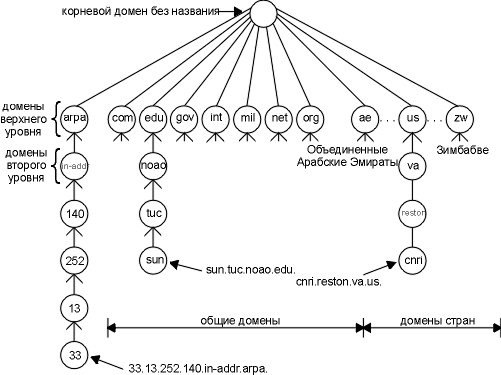Пространство имен DNS имеет иерархическую структуру, которая внешне напоминает файловую систему Unix. На рисунке 1 показана иерархическая органзация DNS.