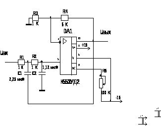 Принципиальная схема активного ФНЧ представлена на рисунке 4. резистор R5 служит для установки 0.