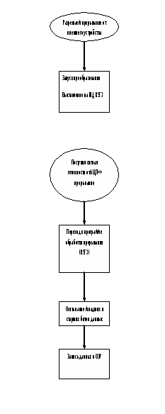 Данные поступают на шину данных. DD4- регистр для хранения управляющего сигнала для АЦП, поступающего с шины данных, записываемого при поступлении сигнала от дешифратора и сигнала разрешения прерывания INTA на вход С микросхемы. При разрешении программой работы, на адрес А4 записывается бит разрешения работы АЦП. Этот бит передается в микросхему АЦП на вход разрешения работы Start. После преобразования на АЦП появляется сигнал готовности Rdy, который вызывает прерывание и разрешает запись в регистры DD3, DD2. DD5 формирует прерывание RST3. При поступлении INTA на вход Z, на шине данных формируется сигнал RST3.