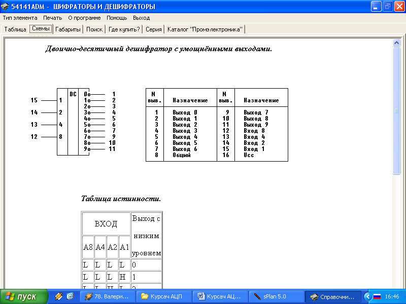 Для работы АЦП в составе микропроцессорной системы необходимо сформировать адреса портов. Начальный адрес (задан) А4. Поэтому присвоим адреса следующим портам: