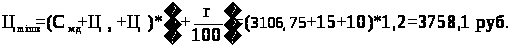 Минимальная цена с учетом НДС рассчитывается по формуле (2)