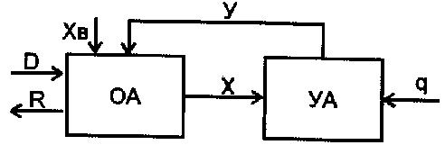 В общем случае ДУ предназначается для выполнения ряда микропрограмм, и на УА подается внешний сигнал q, в соответствии с которым начинается выполнение той или иной микропрограммы. Если ДУ является частью системы обработки информации, то оно может также обмениваться специальными сигналами логических условий X>B> и управления Y>B> с другими блоками системы.