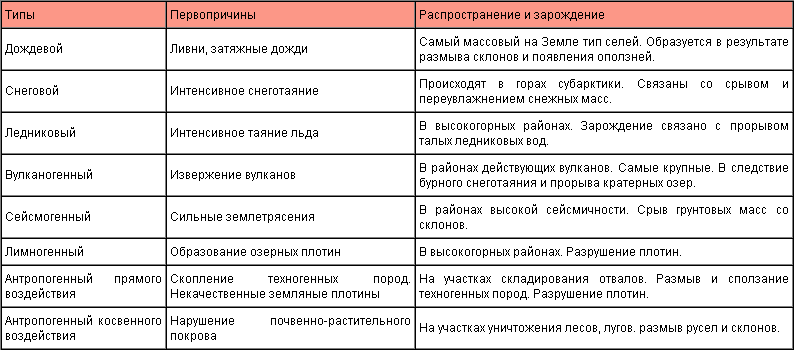 По первопричинам возникновения селей