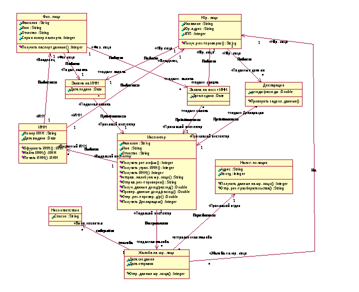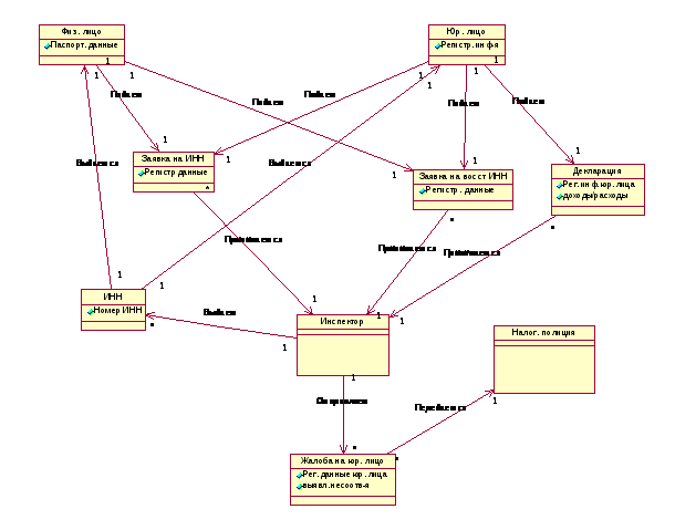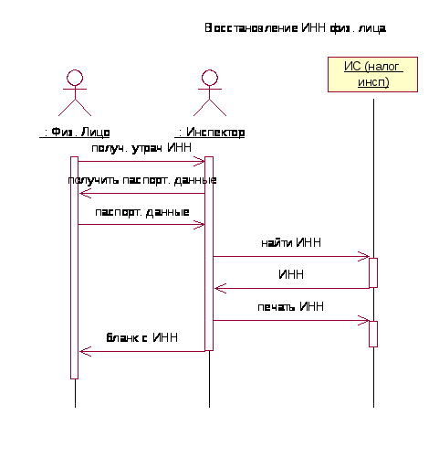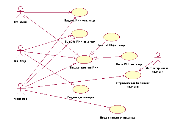 В настоящей работе с использованием языка UML описывается информационная система налоговой инспекции. Суть заключается в том, что автоматизации подвергается работа налоговых инспекторов с физическими и юридическими лицами, а так же с базами данных.