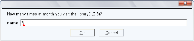 ask_name('How many times at month you visit the library(1,2,3)?', name, PSB),