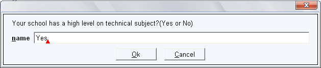 ask_name('Your school has a high level on technical sub>ject?(Yes or No)', name, YHY),