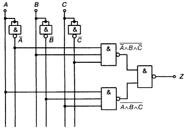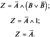 Схема НЕ (інвертор) реалізує операцію заперечення. Зв'язок між входом x цієї схеми і виходом z можна записати співвідношенням z =, x де читається як "не x" або "інверсія х".