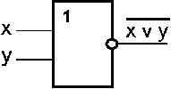 Схема АБО-НЕ складається з елемента АБО й інвертора і здійснює заперечення результату схеми АБО. Зв'язок між виходом z і входами x і y схеми читається як "інверсія x або y".