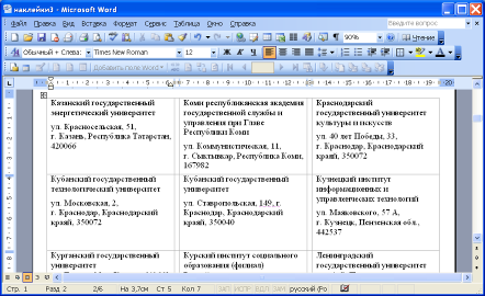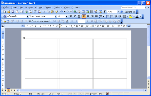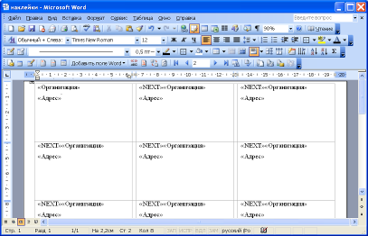 В результате в основном документе будет автоматически создана таблица с ячейками, равными по размеру самоклеющимся адресным этикеткам, а расположение ячеек таблицы будет такое же, как расположение этикеток на подложке (Рисунок 15). При этом размер ячеек указывается как точное значение2 (а не как минимальное), поэтому границы таблицы будут постоянными и не будут автоматически сдвигаться в случае нехватки места для текста в какой-либо из ячеек.