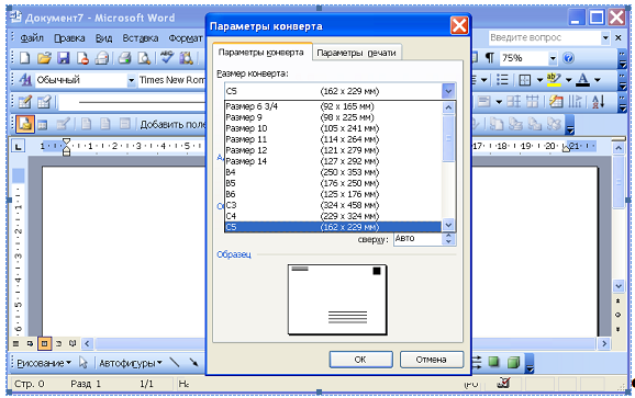 При печати конвертов может возникнуть следующий вопрос. Как быть, если конверт нужен формата С4 (229 х 324 мм), а принтер позволяет печатать только формат А4 (210 х 297 мм) и ради печати почтовых конвертов покупать другой принтер никто не будет. Можно ли использовать функцию слияния в данном случае?