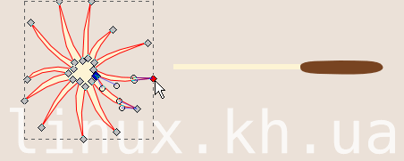 5. Группируем получившийся шарик и рисуем стебелек инструментом "Рисовать кривые Безье и прямые линии" (Shift+F6). Задаем стебельку линейный градиент от темно-зеленого к коричневому.