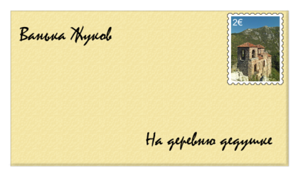 8. Теперь можно отправлять письма "на деревню дедушке". Попробуйте создать подобный конверт, поместив готовую марку поверх него и вставить имена адресата и отправителя.