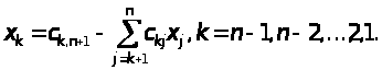тобто матриця коефіцієнтів системи – верхня трикутна, то розв’язують її досить просто, послідовно виключаючи невідомі по черзі з останнього рівняння.