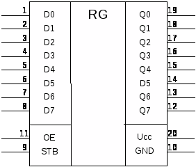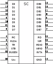 Генератор тактовых сигналов КР580ГФ24 (DD1) состоит из генератора опорной частоты, счётчика делителя частоты на 9, формирователя фаз С1, С2 и логических схем. Для стабилизации тактовых сигналов опорной частоты к входам ХТАL 1, ХТАL2 генератора подключают кварцевый резонатор, частота которого должна быть в 9 раз больше частоты выходных сигналов С1, С2. для автоматической установки генератора в исходное состояние при подаче напряжения к входу RESIN подключают цепь, состоящую из элементов R (100кОм), VD, C1 (10мкФ). В момент включения источника питания конденсатор С1 разряжен, на входе RESIN сигнал высокого уровня, осуществляется сброс микропроцессора. Через резистор R1 конденсатор заряжается, напряжение на входе RESIN падает. Когда напряжение на входе RESIN достигнет логического нуля, снимается сигнал RESET с выхода микросхемы и микропроцессор производит первое обращение за чтением команды к ячейке памяти по адресу 0000Н. Положительные импульсы, сдвинутые во времени, амплитудой 12В и частотой 0,5-3,0 МГц с входов С1, С2 генератора подаются на одноимённые входы микропроцессора. В начале каждого машинного цикла микропроцессор вырабатывает сигнал синхронизации SYN, который в сочетании с другими сигналами может быть использован для организации различных режимов работы. Этот сигнал подаётся на вход SYN генератора. К адресным выходам А0-А15 микропроцессора подключаются, буферные регистры RG для повышения нагрузочной способности. На вход ОЕ микросхем подаётся логический ноль для разрешения передачи данных (управление третьим состоянием), а на входы STB логическая единица для выбора направления передачи данных (из A в B). Выходы микросхем объединяются в системную шину адреса с повышенной нагрузочной способностью. Системный контроллер КР580ВК28 состоит из двунаправленной буферной схемы данных, регистра состояния и дешифратора управляющих сигналов. Восьмиразрядная параллельная 3-стабильная буферная схема данных принимает информацию с канала данных микропроцессора по выводам D7-D0 и передаёт в регистр состояния информацию состояния, на системный канал данных по выводам DВ7-DВ0 выдаёт в цикле записи по сигналу TR. В цикле чтения по сигналу RC буферная схема принимает данные с системного канала по выводам DB7 и DB0 и передаёт по выводам D7-D0 на канал данных микропроцессору. Регистр состояния по входному сигналу SТВ фиксирует информацию состояния микропроцессора в такте Т1 каждого машинного цикла микропроцессора. Дешифратор управляющих сигналов формирует один из управляющих сигналов в каждом машинном цикле: при чтении ЗУ-RD, при записи в ЗУ-WR, при чтении из УВВ-RDIO, при записи в УВВ-WRIO, при подтверждении запроса прерывания, сигнал INTA. Напряжение высокого уровня на входе HLDA переводит выходы RD, RDIO, INTA в пассивное состояние (напряжение высокого уровня) и блокирует передачу информации через буферную схему данных. ПЗУ как раннее отмечалось, предназначено для хранения и считывания двоичной информации. ПЗУ состоит из следующих узлов: накопителя (НК), дешифраторов строк и столбцов (DCX, DCY), которые определяют к какому элементу памяти накопителя, производится обращение в соответствие с заданным кодом адреса. После этого подаётся сигнал выбора кристалла (поступает в устройство управления), поступающий с системного контроллера, и определяется режим работы. Адресные входы ПЗУ А0-А7 подключаются 