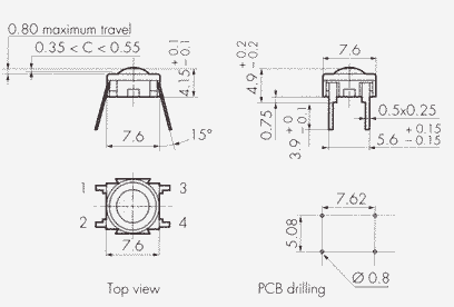 Минимальный диаметр отверстия - 0.4...0,6 мм