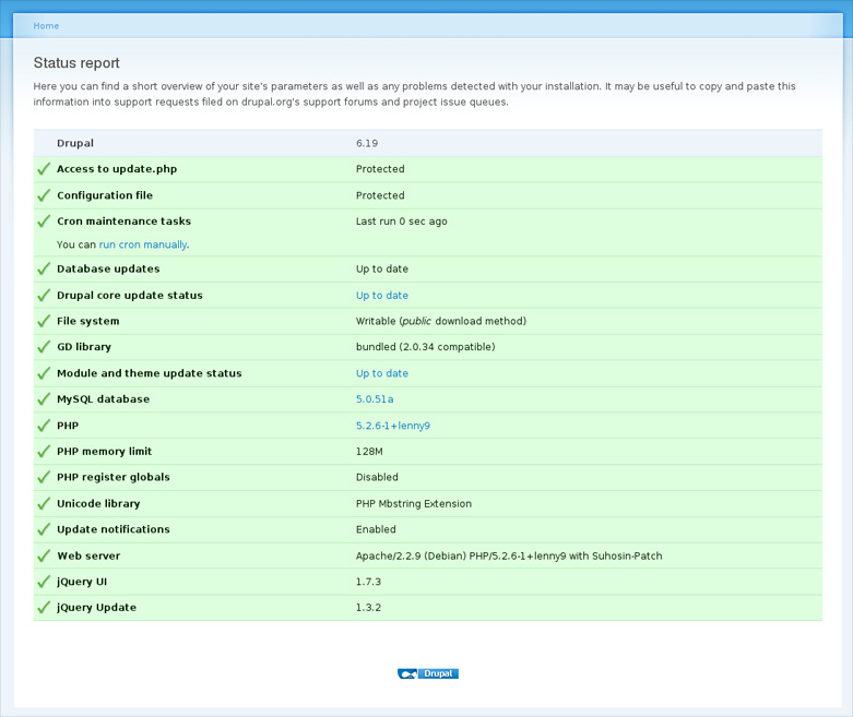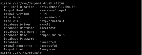 и посмотрим статус установленного у нас на сервере Drupal drush status