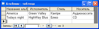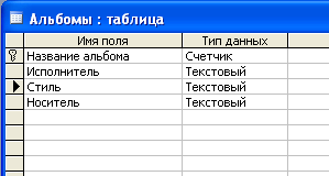 Задание №2. Создайте Таблицу Альбомы с полями: Название альбома, Исполнитель, Стиль, Носитель. Поле Название альбома – ключевое поле,