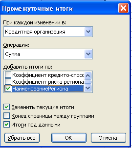 в окне Промежуточные итоги зададим параметры, как на рис.7;