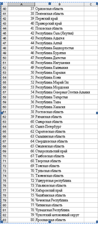 Используя данный список регионов, перепишем их в столбец А и В. Получим: