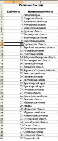 присвоим листу имя СправочникРегионов;