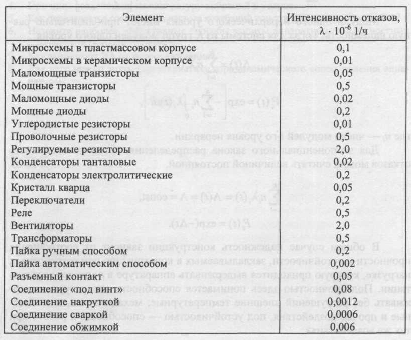 Интенсивности отказов элементов зависят от их электрической нагрузки, температуры окружающей среды и других факторов, учитываемых с помощью поправочных коэффициентов.