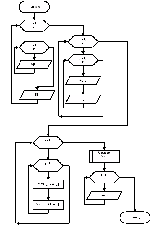 4 Разработка блок схемы решения системы уравнения методом Гаусса