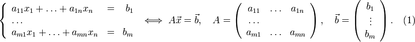 Система т линейных уравнений с п неизвестными имеет вид: