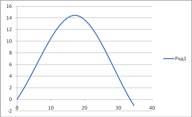 где t — время, g = 10 м/с2 — ускорение свободного падения. Эти формулы и дают математическую модель поставленной задачи. Выражая t через x из первого уравнения и подставляя во второе, получим уравнение траектории движения снаряда:
