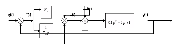 2. Выбрать регулятор таким образом, чтобы система обладала свойством астатизма по отношению к постоянному задающему g(t) и возмущающему f(t) воздействию.