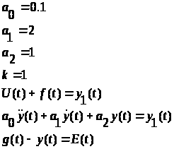 6. Вычислить значения параметров ПИ – регулятора, обеспечивающих устойчивость и установившуюся ошибку в системе = 0,06 при g(t)=2t и f(t)=0