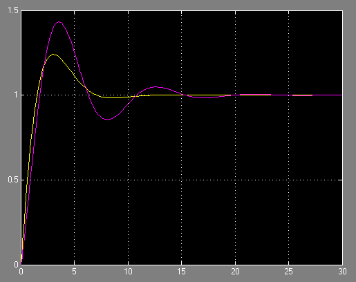 Таким образом для получения в системе установившейся ошибке равной 0,06 необходимо задать параметру постоянной времени значение 0,03.