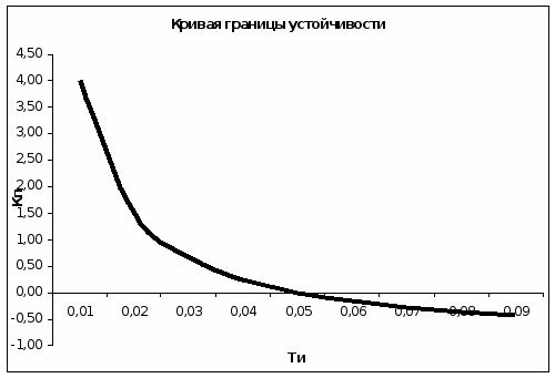 3. Найти область значений постоянной времени регулятора для И – закона управления, обеспечивающих устойчивость системы.